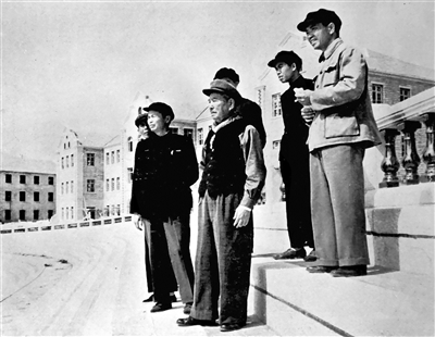 陈嘉庚视察厦门大学建设工地。(资料图片)