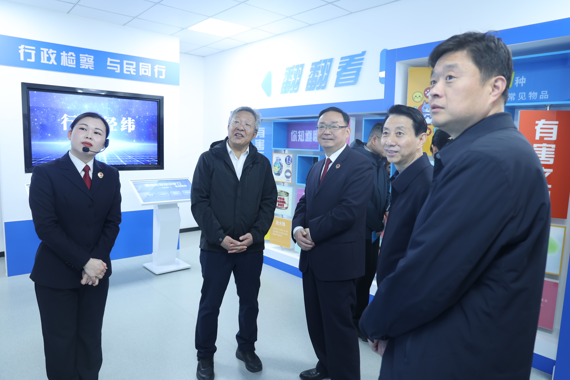 调研组一行深入考察淮阴区检察院青少年法治教育打卡点,先后参观了民法典文化园、刑事办案区、彩虹未成年人司法保护中心等沉浸式普法场所,详细了解了淮阴区检察院创建开放式检察院以来的接待规模、来访人员、工作成效等情况。